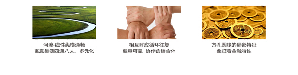 圓形寓意:外圓內方形態,取意于中國的傳統錢幣,代表財富標識,符合投資企業的企業形象。